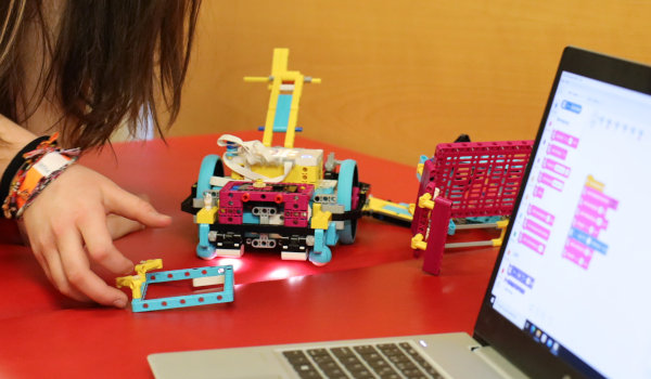 Mir programméieren de Lego-Spike mat enger einfacher Blocksprooch (ähnlech wéi wéi Scratch).
