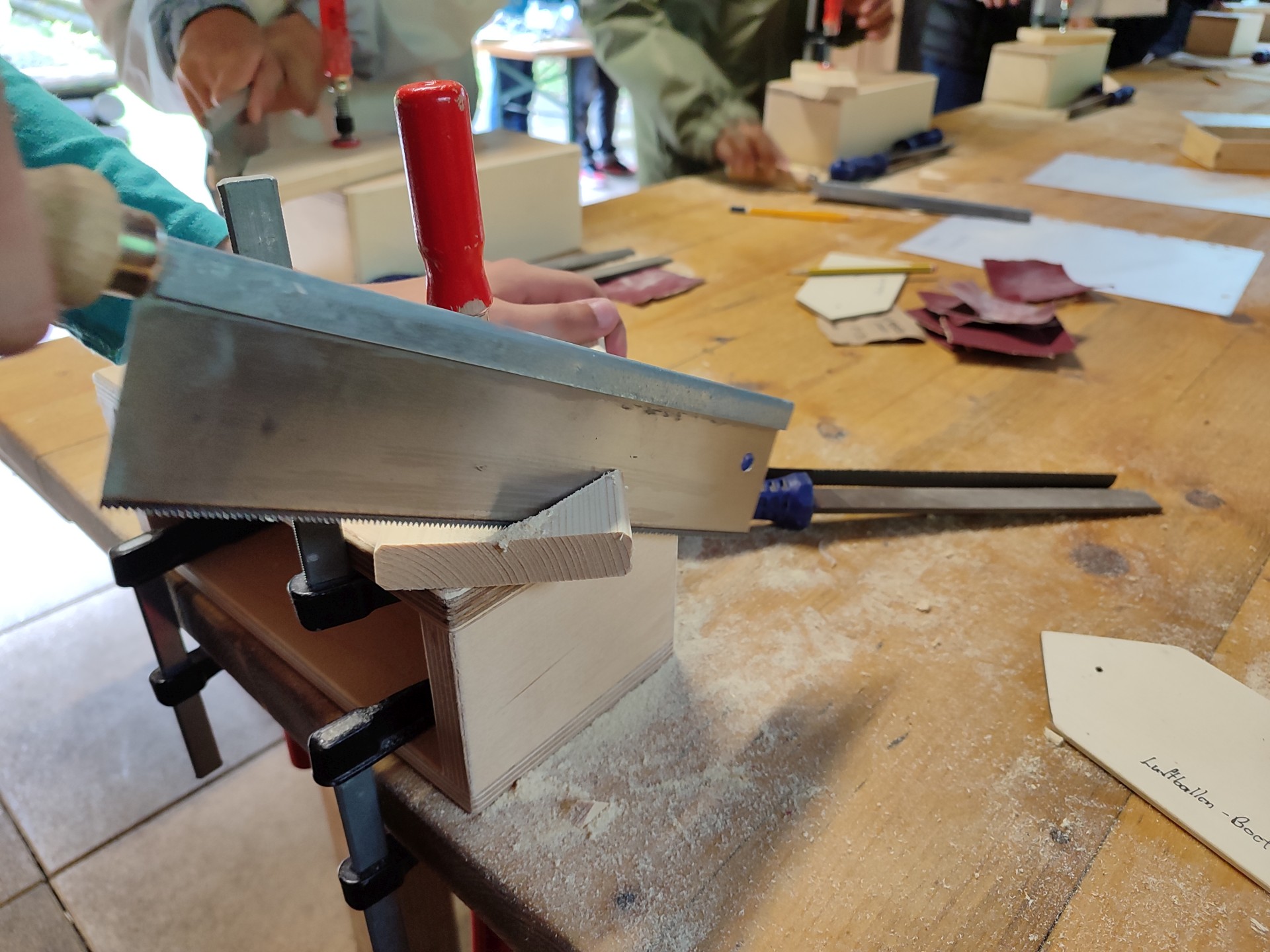 Bei eis kënnt de "Workshop to go" zum Beispill an den Asaz, wa mir zesumme mat der Naturschoul d'Spiller am Waassergaart ubidden. An engem vun den Atelieren bauen d'Schüler e klengt Loftballonboot. Dofir mussen si seeë, feilen a schläifen.